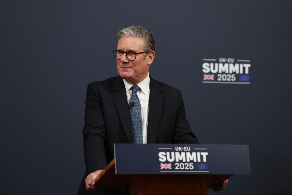 5月19日,英國首相斯塔默在倫敦與歐盟領(lǐng)導人舉行會議后參加記者會。新華社發(fā)(英國首相府供圖)