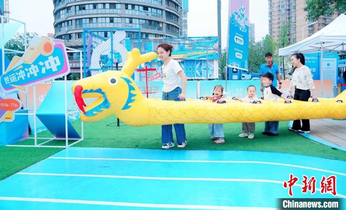 5月30日,市民游客在成都世運(yùn)會(huì)“跟著賽事去旅行”武侯站體驗(yàn)趣味旱地龍舟。成都世運(yùn)會(huì)執(zhí)委會(huì)供圖