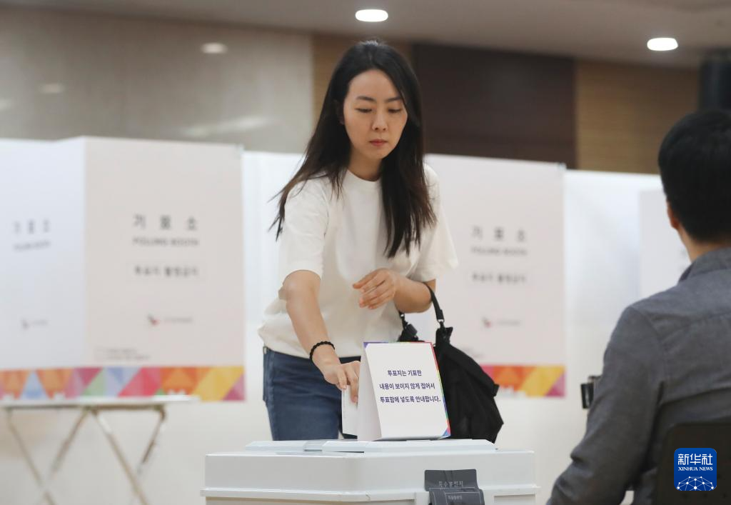6月3日,韓國(guó)選民在首爾一處投票站投票。新華社記者 姚琪琳 攝