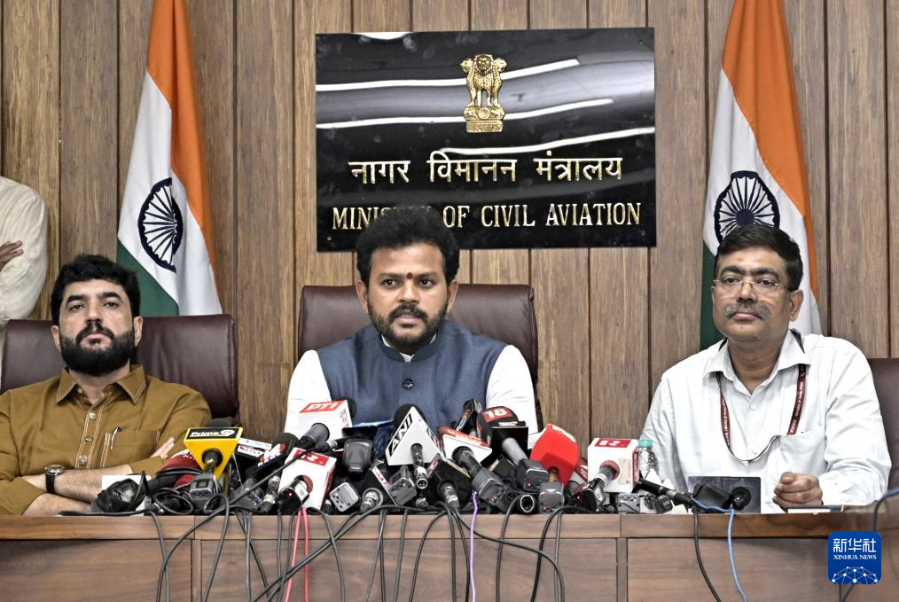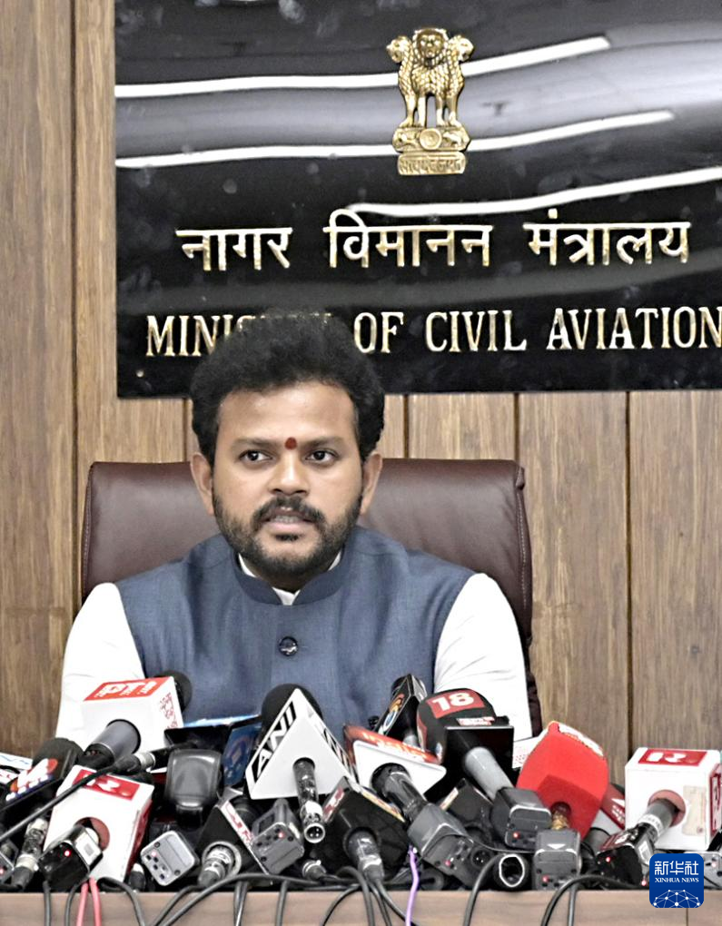 6月14日,印度航空部長拉姆·莫漢·奈杜在新德里出席新聞發(fā)布會。新華社發(fā)(印度政府新聞信息局供圖)