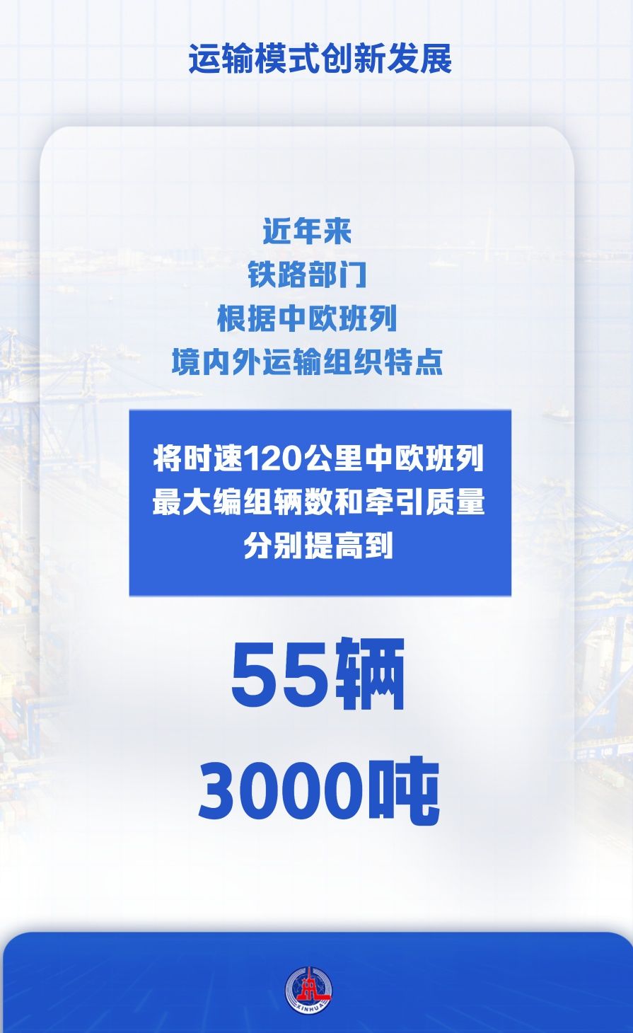 近年來,鐵路部門根據(jù)中歐班列境內(nèi)外運(yùn)輸組織特點(diǎn),將時(shí)速120公里中歐班列最大編組輛數(shù)和牽引質(zhì)量分別提高到55輛、3000噸。