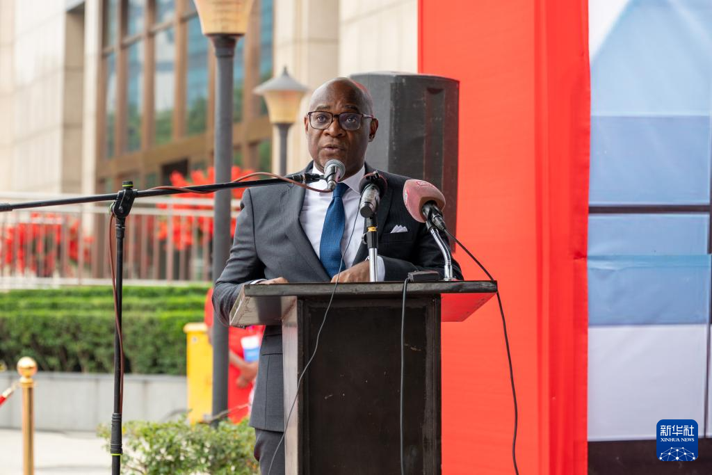 7月11日,剛果(布)財(cái)政、預(yù)算和國(guó)庫(kù)部長(zhǎng)克里斯蒂安·約卡在布拉柴維爾舉行的中剛非洲銀行開業(yè)十周年慶?;顒?dòng)上致辭。新華社記者 鄭揚(yáng)子 攝