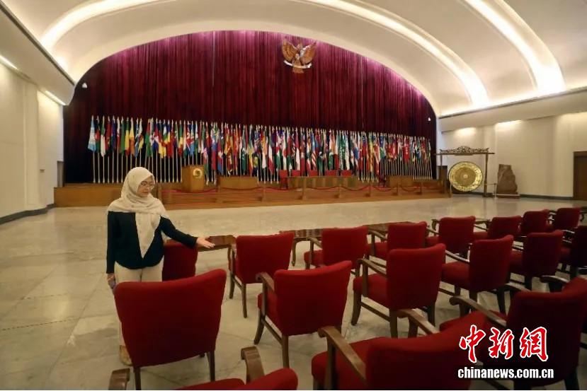 當(dāng)?shù)貢r間2025年3月18日,在萬隆亞非會議紀(jì)念博物館內(nèi),工作人員展示中國代表團(tuán)在1955年萬隆會議上的座席區(qū)域。 中新社記者 李志全 攝