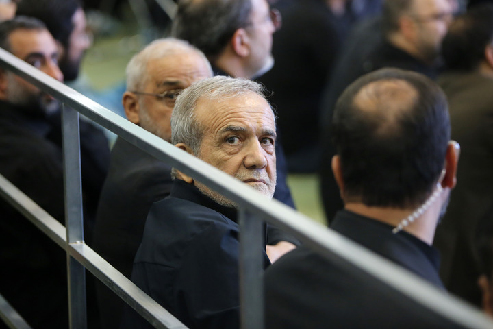 7月2日,伊朗首都德黑蘭,伊朗總統(tǒng)佩澤希齊揚參加紀念儀式。新華社發(fā)