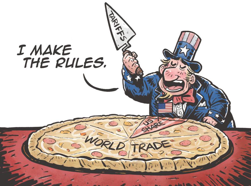 文章指出,歷史上曾有過(guò)這樣的時(shí)刻:隨著國(guó)際關(guān)系中的公平表象消退,粗暴的權(quán)力博弈卷土重來(lái)。這種情況同樣適用于當(dāng)代全球貿(mào)易體系。過(guò)去幾十年里,美國(guó)一直宣稱,這套貿(mào)易體系立足于開(kāi)放的市場(chǎng)、以規(guī)則為基礎(chǔ)的秩序以及互惠互利,構(gòu)成了良性循環(huán)。