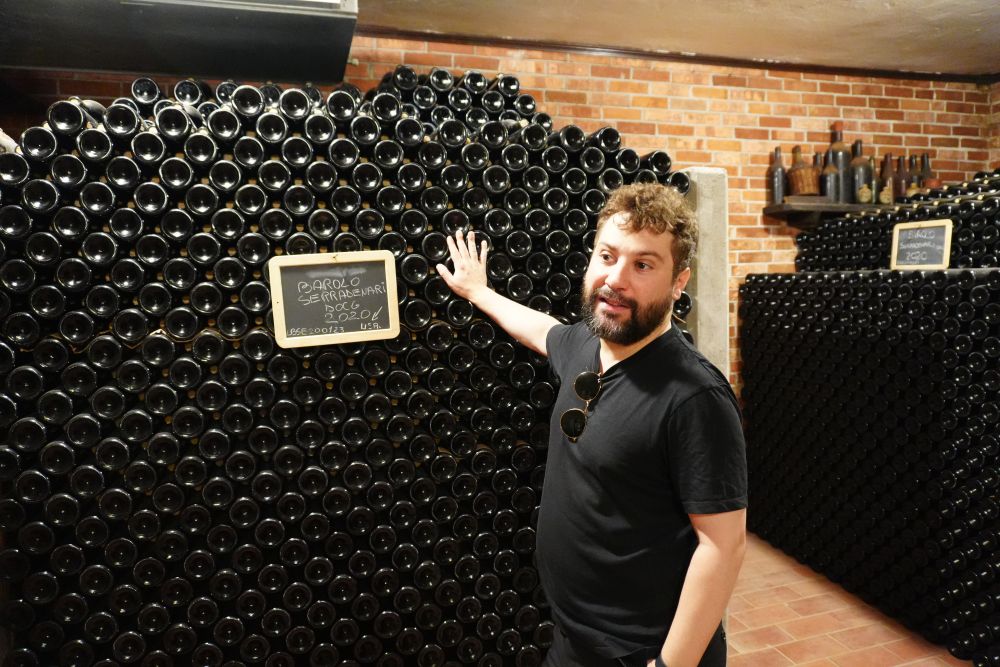 8月17日,在意大利塞拉倫加達(dá)爾巴鎮(zhèn),圭多·波羅酒莊的掌門人法比奧·波羅在酒莊地窖里工作。新華社記者張馨文攝