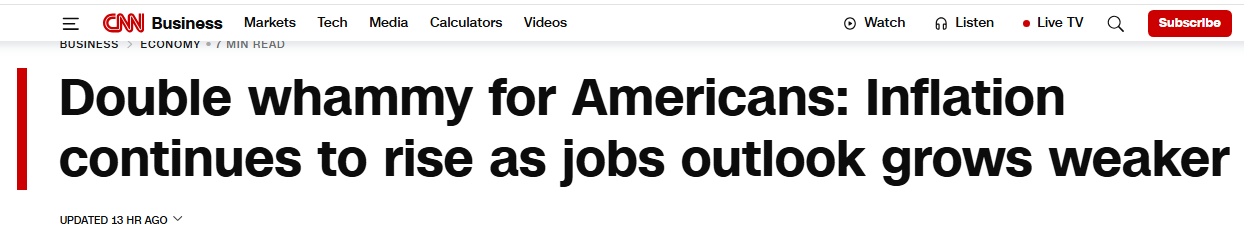美國經(jīng)濟正面臨 “通脹高企” 與 “就業(yè)降溫” 的雙重打擊。