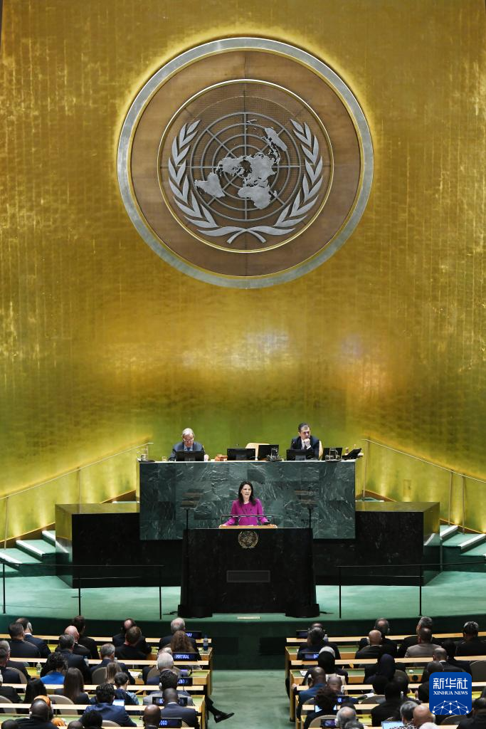 9月23日,在位于紐約的聯(lián)合國(guó)總部,第80屆聯(lián)大主席貝爾伯克(中)主持第80屆聯(lián)合國(guó)大會(huì)一般性辯論開(kāi)幕式。新華社記者吳曉凌攝