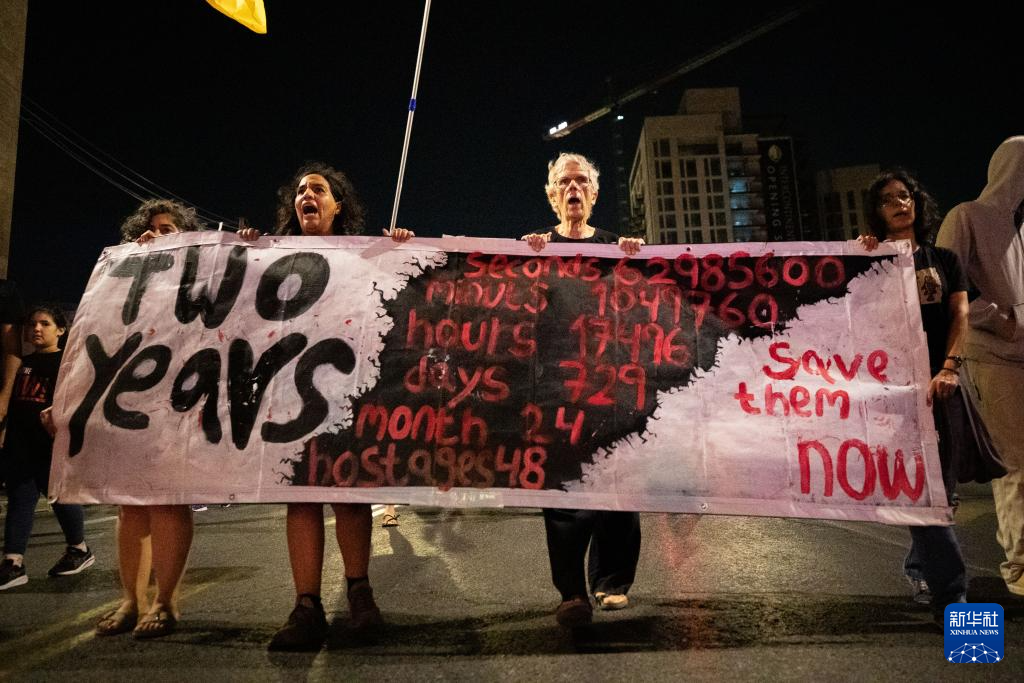 廣場(chǎng)上,巨大的電子計(jì)時(shí)牌顯示“733天11小時(shí)46分48秒”,那是新一輪巴以沖突延宕的時(shí)間。這個(gè)數(shù)字還在不斷累加……