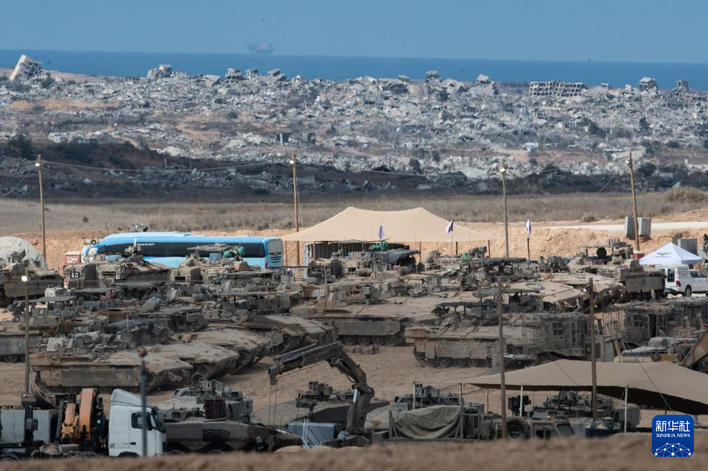 這是10月10日?;鹕Ш笈臄z的位于加沙邊境的以軍部隊(duì)。新華社記者 陳君清 攝
