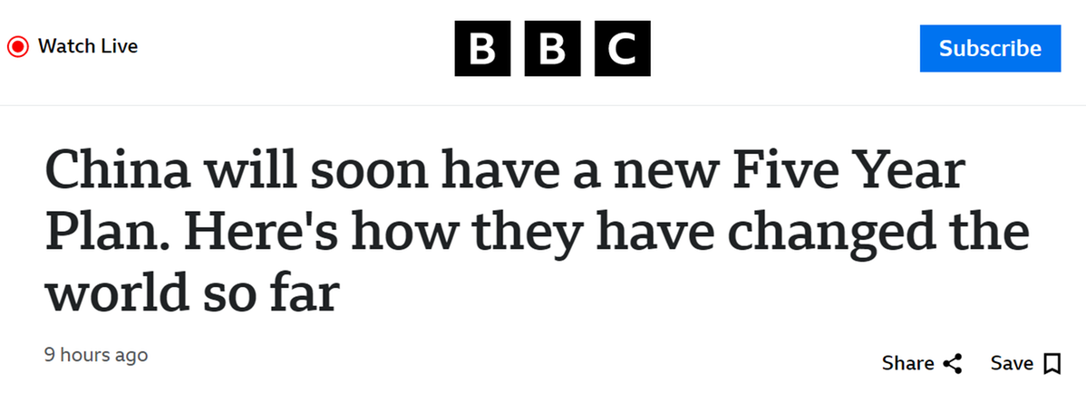 英國廣播公司(BBC)網站報道稱,中共二十屆四中全會將奠定中國未來五年發(fā)展規(guī)劃的基礎,這是世界第二大經濟體在2026年至2030年間將遵循的藍圖。歷史證明,中國科學制定和接續(xù)實施的五年規(guī)劃已經深刻重塑全球發(fā)展格局。