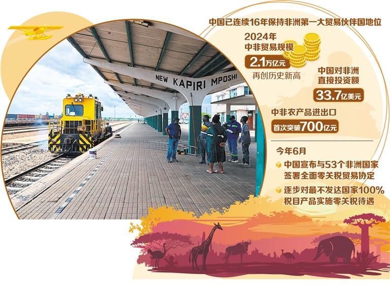 數(shù)據(jù)顯示,中國(guó)已連續(xù)16年保持非洲第一大貿(mào)易伙伴國(guó)地位。2024年,中非貿(mào)易規(guī)模達(dá)到2.1萬(wàn)億元,再創(chuàng)歷史新高。
