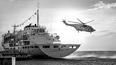 中國海軍“和平方舟”號(hào)醫(yī)院船靠泊所羅門群島霍尼亞拉港期間,艦載醫(yī)療救護(hù)直升機(jī)開展巡診服務(wù)。新華社發(fā)