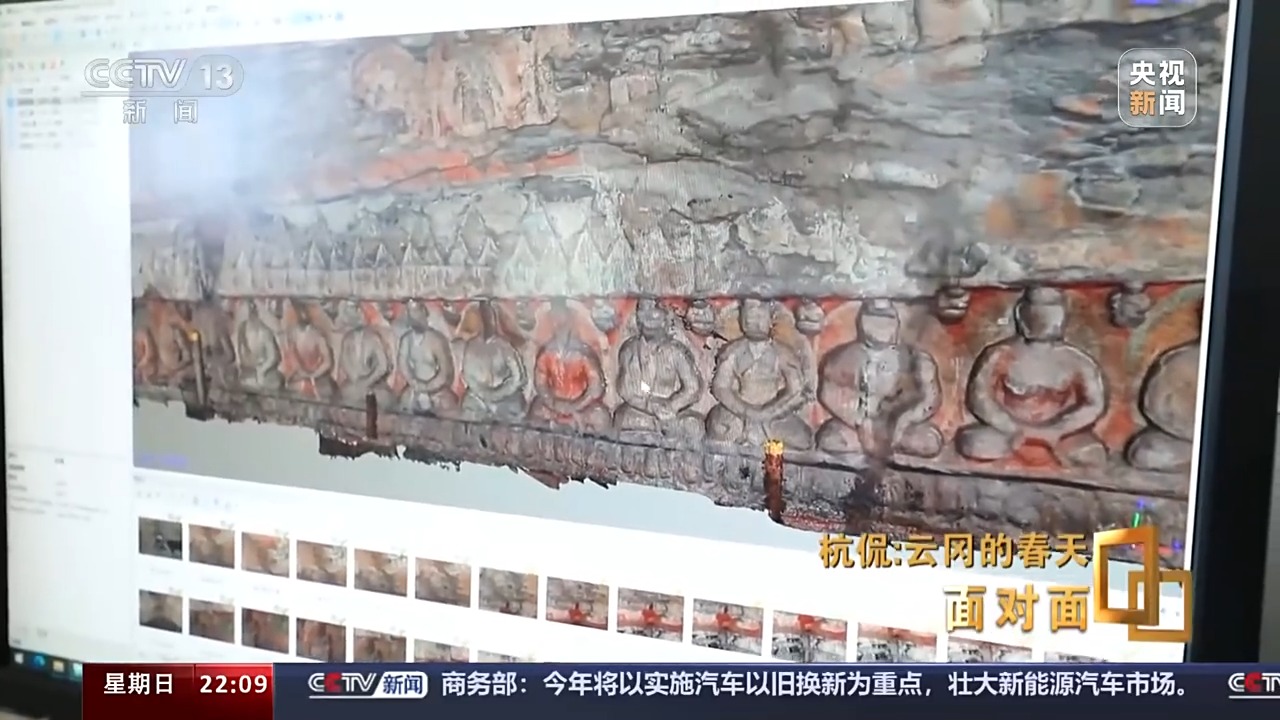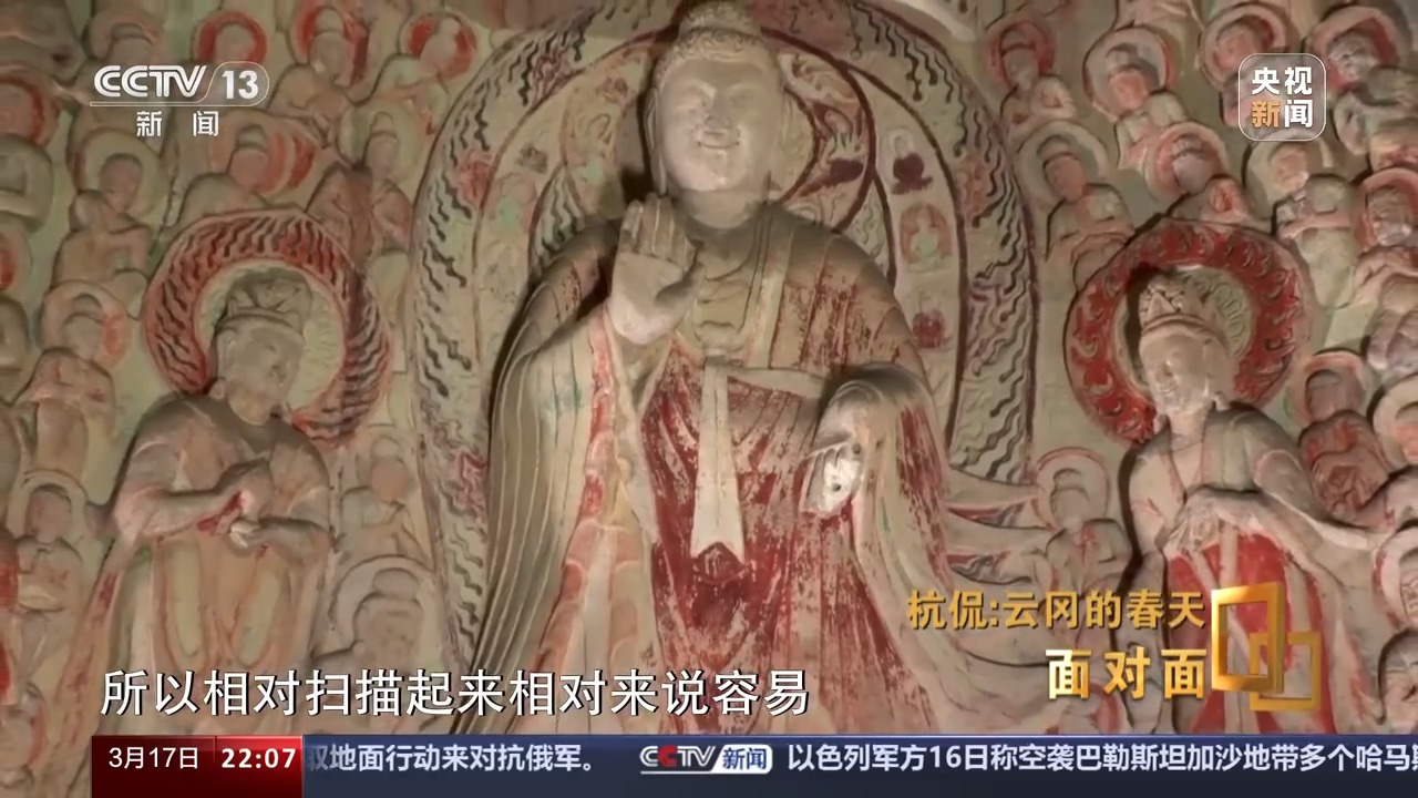 杭侃:因為敦煌起步早,到現(xiàn)在都是我們學習的榜樣。但是敦煌它正是因為起步早,可能我們現(xiàn)在技術(shù)迭代比較快。所以從技術(shù)迭代的角度來說我們并不落后。我們現(xiàn)在的精度已經(jīng)到了0.03毫米了,但是那樣需要的算力是非常大的。我們這有一個超算中心,超算中心是什么概念?就是你看到的一個洞窟的運算能力,要和一個中等城市的,我們叫智慧城市,那個量是一樣的。云岡它是一個皇家工程,所以那個像都特別大,敦煌它很多洞窟比較小,另外敦煌它的壁畫非常精彩,但是壁畫是二維的,所以相對掃描起來相對來說容易,但是我們這個地方它一個是大,第二個就是雕刻的手法多。所以像你看到的第六窟,我們到現(xiàn)在都沒有拿得出來,大家都能認可的采集方案。
