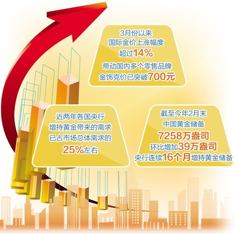 市場(chǎng)分析人士認(rèn)為,今年以來,在美聯(lián)儲(chǔ)貨幣政策確定轉(zhuǎn)向的背景下,疊加近期地緣政治沖突激化,以及全球多國(guó)央行對(duì)黃金的持續(xù)需求,多因素共同推動(dòng)了國(guó)際金價(jià)的強(qiáng)勁上漲。