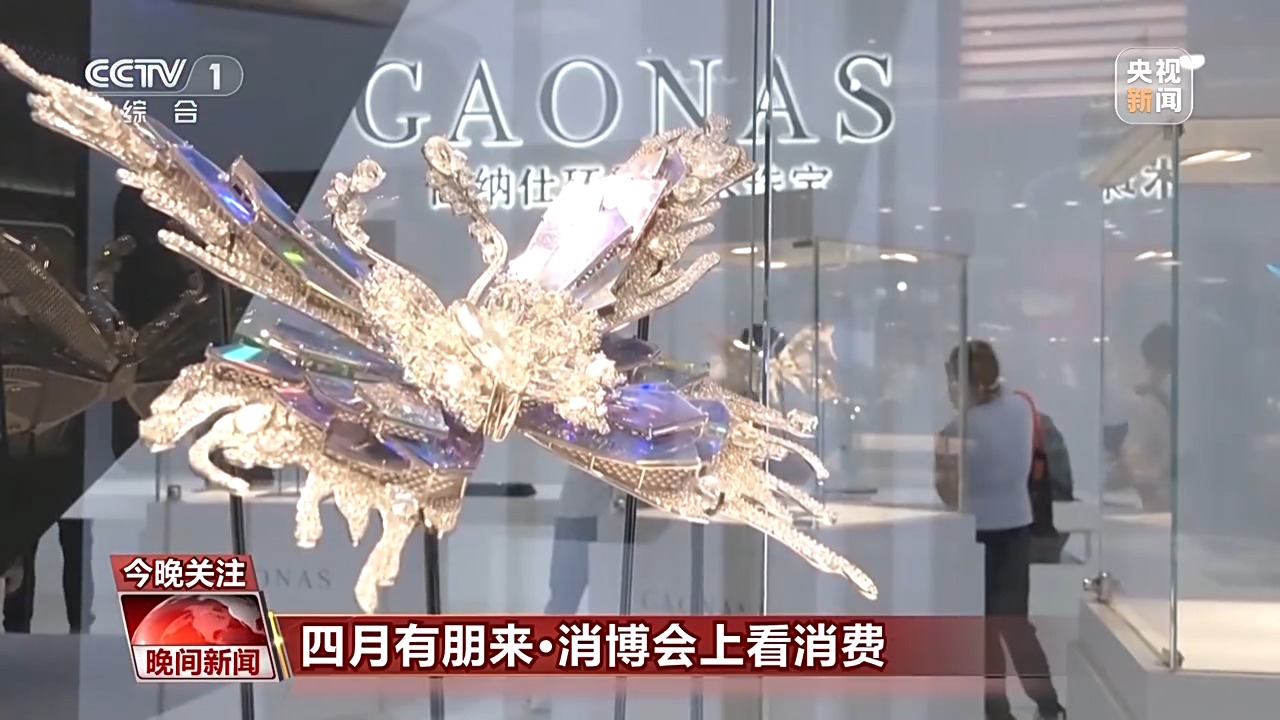 在這個(gè)珠寶藝術(shù)品的展臺(tái),8只由AI設(shè)計(jì)的蝴蝶翩翩起舞,為觀眾帶來了新奇的體驗(yàn),也展示了科技在珠寶設(shè)計(jì)中的無限可能。