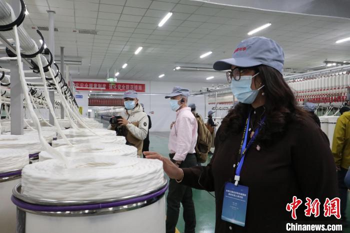 4月13日,外國(guó)媒體人來(lái)到新疆尉犁縣利華紡織有限公司紡紗廠參觀。 徐雪瑩 攝
