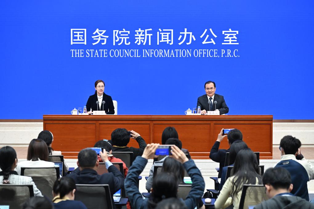 4月16日,國務院新聞辦公室在北京舉行新聞發(fā)布會,國家統(tǒng)計局副局長盛來運介紹2024年一季度國民經(jīng)濟運行情況,并答記者問。新華社記者 李鑫 攝