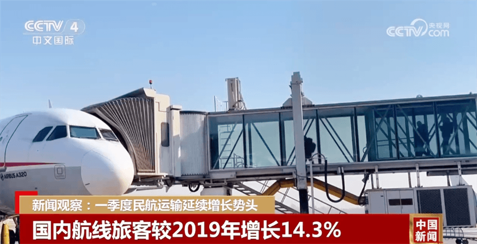 貨運方面,全行業(yè)一季度共完成貨郵運輸量200.7萬噸,為歷年一季度貨運量最高值,同比增長34.4%,較2019年同期增長19.6%。其中,國內航線較2019年同期增長8.2%,國際航線較2019年同期增長43.6%。