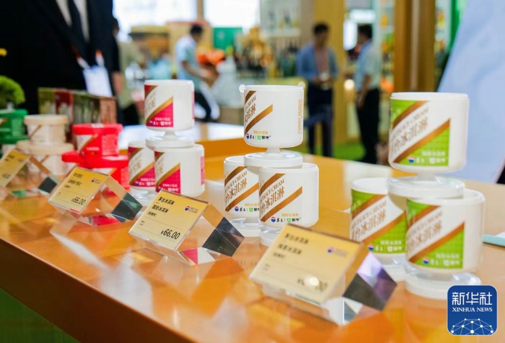 茅臺(tái)展區(qū)展示的茅臺(tái)冰淇淋。近年來(lái),茅臺(tái)不斷推出文創(chuàng)產(chǎn)品,品牌年輕化成效顯著。新華社記者王楚天 攝