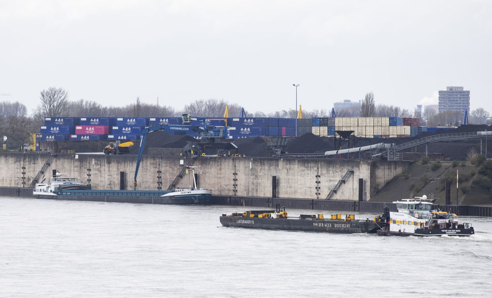 貨輪排隊(duì)??浚疖國Q笛駛?cè)胴涍\(yùn)場站,卡車搭載著印有“渝新歐”“義新歐”“西安港”等字樣的集裝箱往來奔馳……這座萊茵河畔的港口,一派繁忙景象。