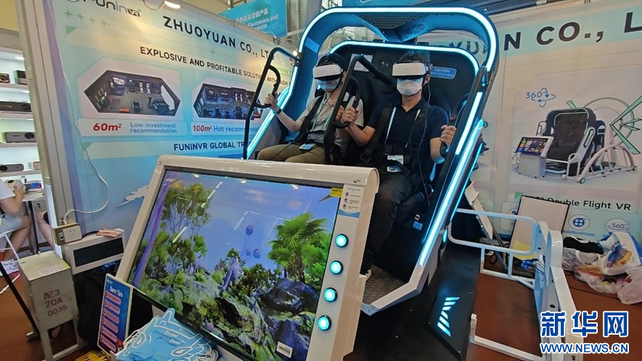 采購商體驗VR娛樂設備。新華網(wǎng)伍嘉煒 攝