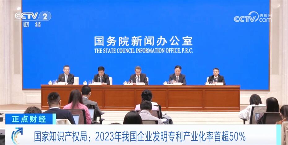 記者4月24日從國際知識產(chǎn)權(quán)局了解到,2023年,我國企業(yè)發(fā)明專利產(chǎn)業(yè)化率首次超過50%,來看報(bào)道。