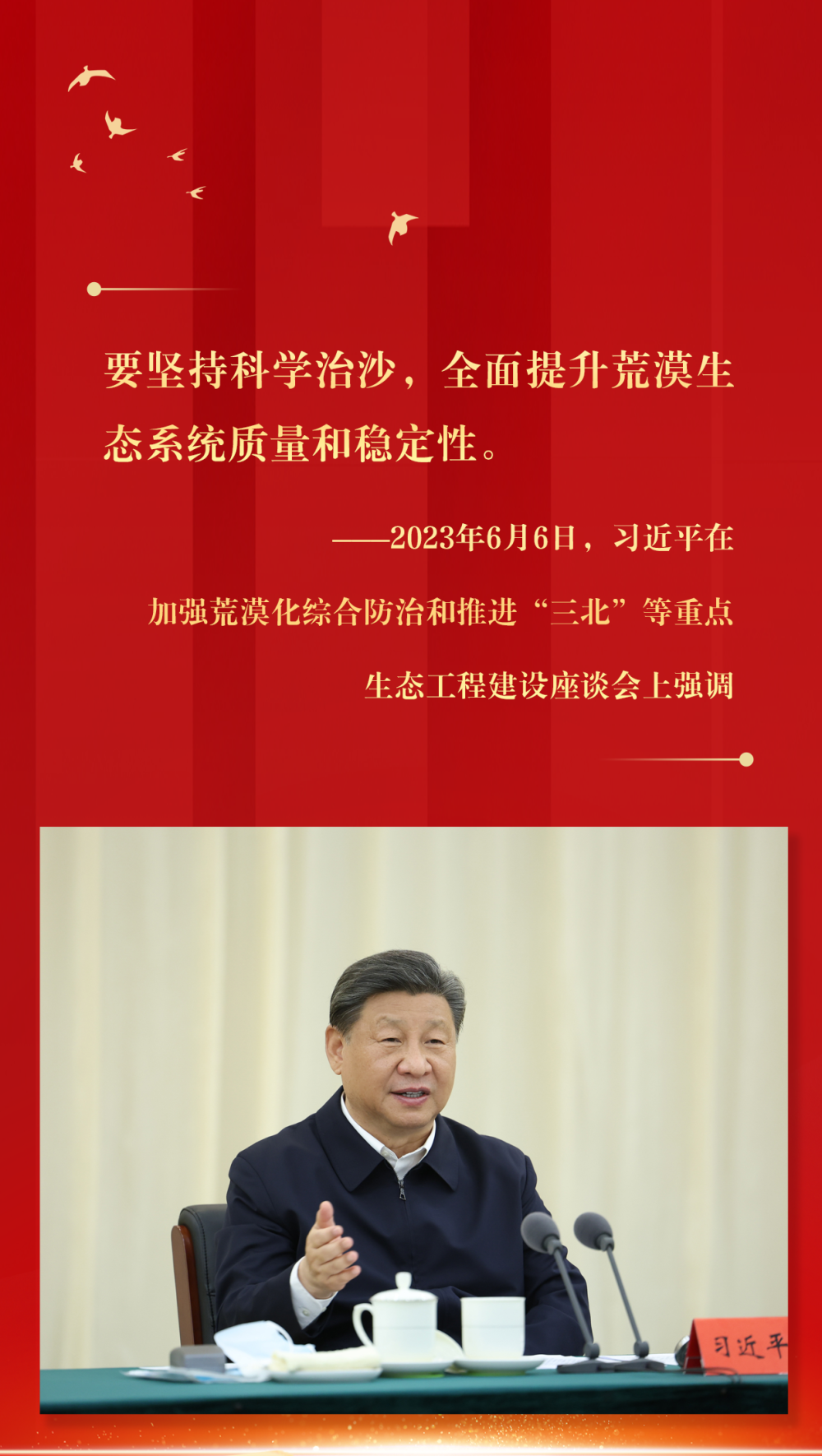 2023年6月5日至6日,習(xí)近平在內(nèi)蒙古巴彥淖爾考察,并主持召開加強(qiáng)荒漠化綜合防治和推進(jìn)“三北”等重點(diǎn)生態(tài)工程建設(shè)座談會(huì)。這是6日上午,習(xí)近平在臨河區(qū)國(guó)營(yíng)新華林場(chǎng)考察。