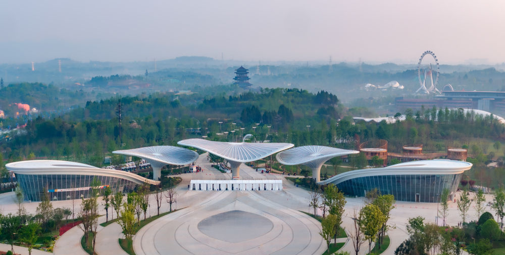 窗含千秋,門泊萬里。從空中俯瞰,2024年成都世界園藝博覽會(huì)主會(huì)場如同一朵盛放的芙蓉花,迎接世界各方賓朋。