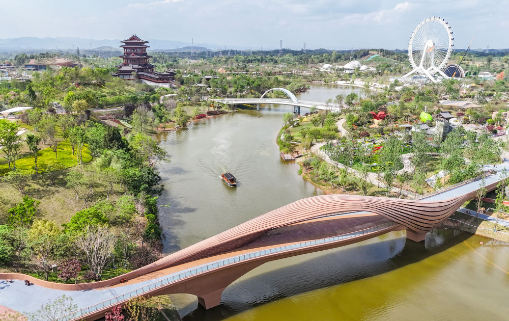 這是2024年4月23日拍攝的成都世園會(huì)郫都分會(huì)場(無人機(jī)照片)。新華社記者 王曦 攝