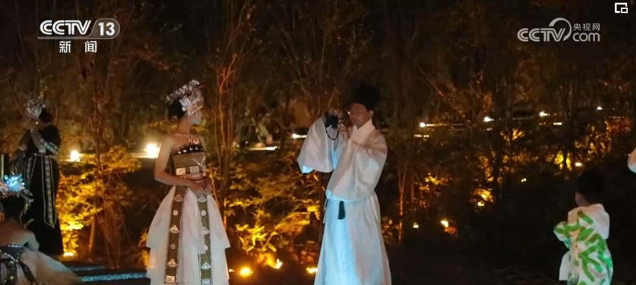 距離成都60多公里的德陽市,運營只有半年多的沉浸式小劇場里擠滿了游客。這個將戲劇、演藝、音樂、歌舞等多種藝術(shù)形態(tài)融為一體的演出,已經(jīng)成為游客游覽三星堆之外必到的新目的地。