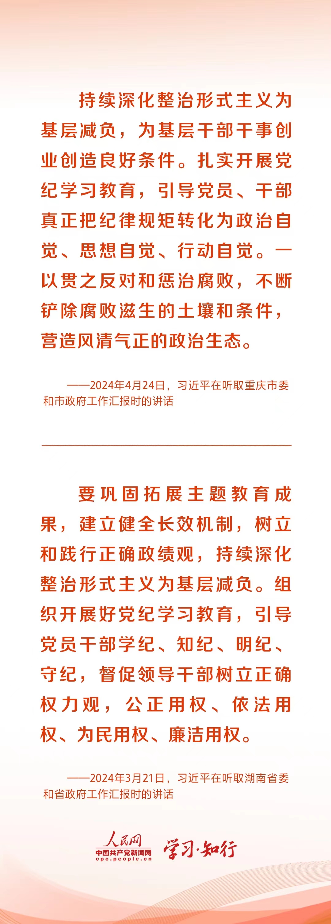 3月,湖南調(diào)研,習(xí)近平指出,黨中央明確要求為基層減負(fù),堅(jiān)決整治形式主義、官僚主義問題,要精兵簡(jiǎn)政,繼續(xù)把這項(xiàng)工作抓下去。