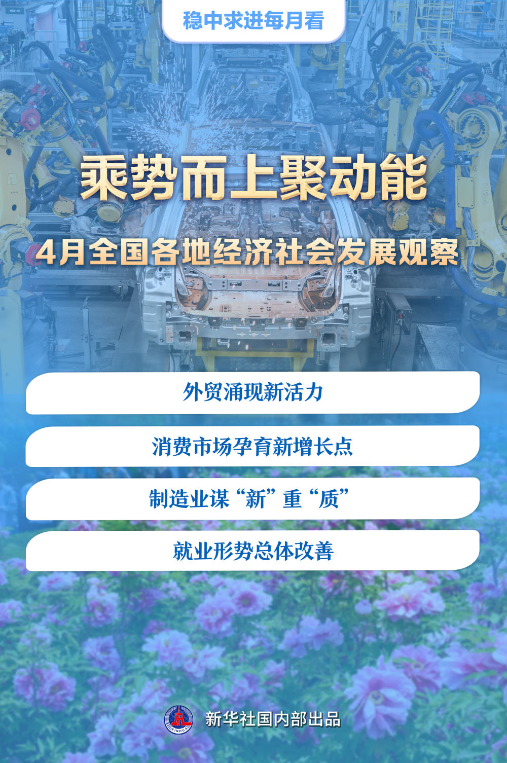 春意盎然育生機。一季度經(jīng)濟數(shù)據(jù)出爐釋放積極信號,消費市場亮點紛呈,經(jīng)濟社會發(fā)展對就業(yè)的帶動效應逐步顯現(xiàn)……今年4月,全國各地真抓實干,乘勢而上,進一步鞏固和增強經(jīng)濟回升向好態(tài)勢。