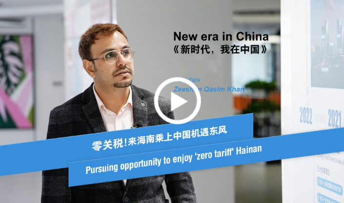依托海南自貿(mào)港帶來的便利,巴基斯坦小伙兒吉姆(Zeeshan Qasim Khan)抓住中國機遇的東風,在海南從事國際貿(mào)易行業(yè),并點贊海南的“零關(guān)稅”政策帶來的業(yè)務(wù)便利。