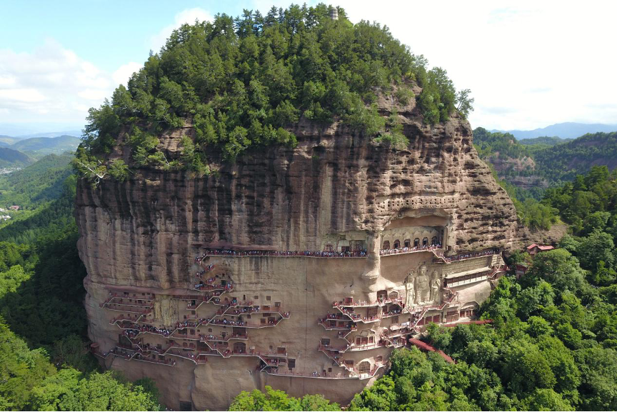 麥積山石窟(無(wú)人機(jī)照片)。新華社記者 范培珅 攝