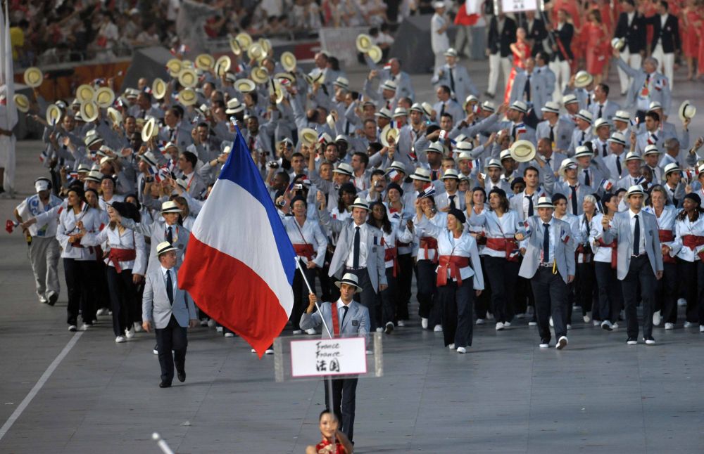 ↑2008年8月8日,法國奧運代表團在北京奧運會開幕式上入場。