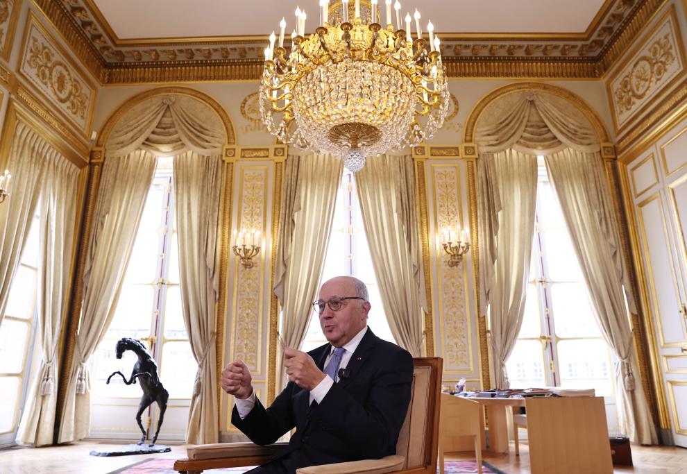 2023年12月12日,在位于法國巴黎的憲法委員會主席辦公室里,法比尤斯接受新華社記者獨家專訪。新華社記者高靜 攝