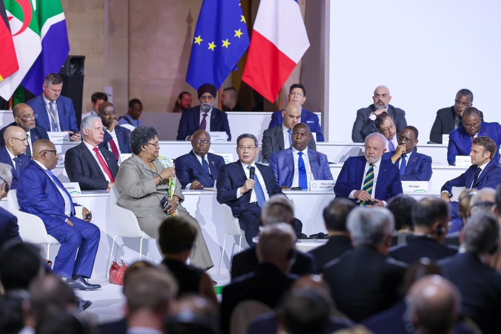2023年6月23日上午,國務(wù)院總理李強在巴黎出席新全球融資契約峰會閉幕式并發(fā)表講話。新華社記者劉彬 攝