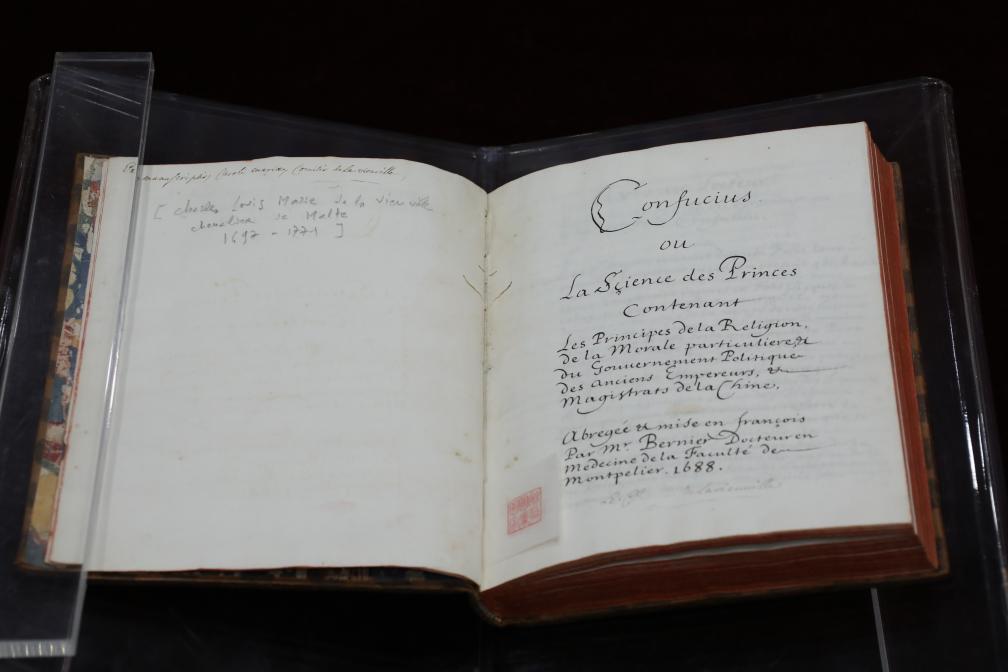 2024年1月28日典藏于中國國家圖書館中的法國國禮《論語導(dǎo)讀》(資料照片)。新華社記者張爽 攝