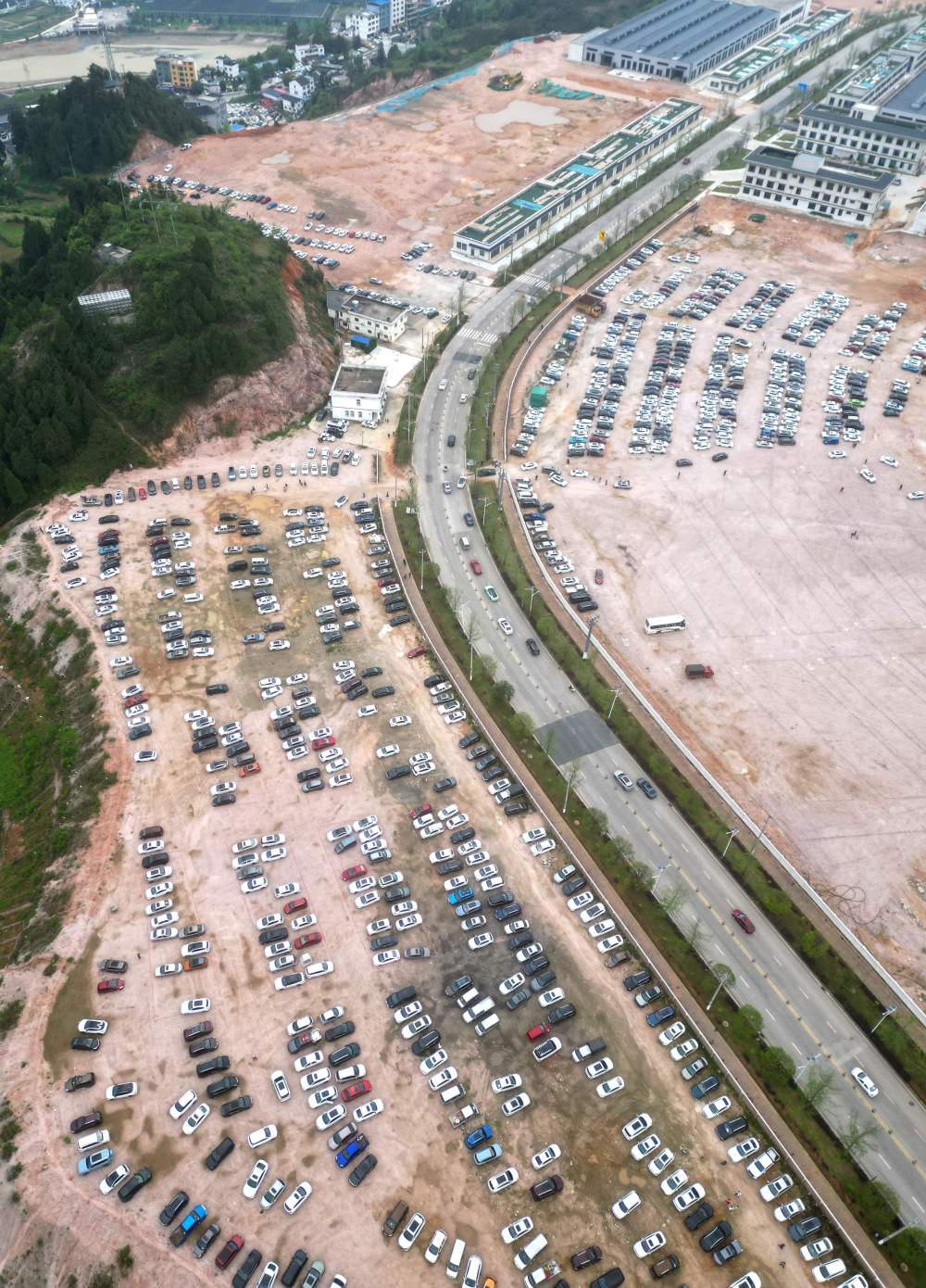 5月1日,游客車輛在貴州省黔東南苗族侗族自治州臺(tái)江縣臺(tái)盤村停車(無人機(jī)照片)。為了滿足外地游客觀看“村BA”的需求,當(dāng)?shù)乩瞄e置空地規(guī)劃設(shè)置免費(fèi)臨時(shí)停車場(chǎng),增加車位7000余個(gè),供游客免費(fèi)停車。新華社發(fā)(余天英 攝)