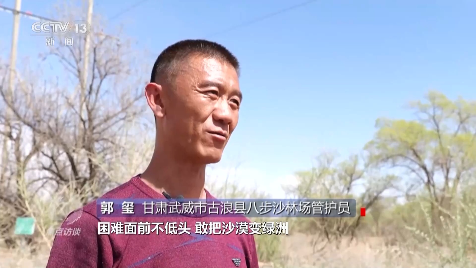 甘肅武威市古浪縣八步沙林場管護員 郭璽:爺爺和父輩他們都是肚子吃不飽的情況下治沙,他們也是把青春付出到沙漠里面來,所以說我想留下來。沒有我想象那么簡單,種樹難,澆水難,所有的事情都難。