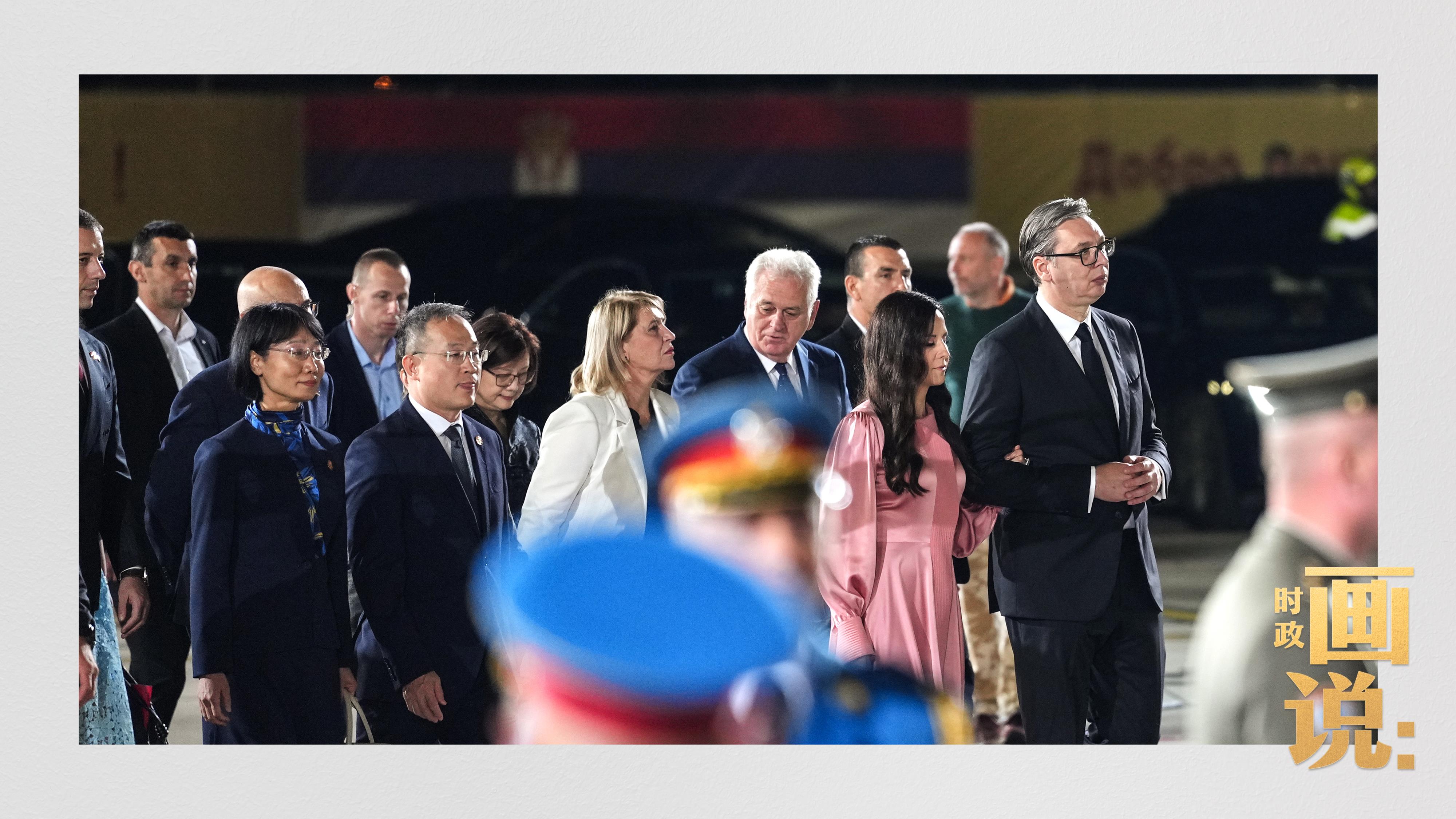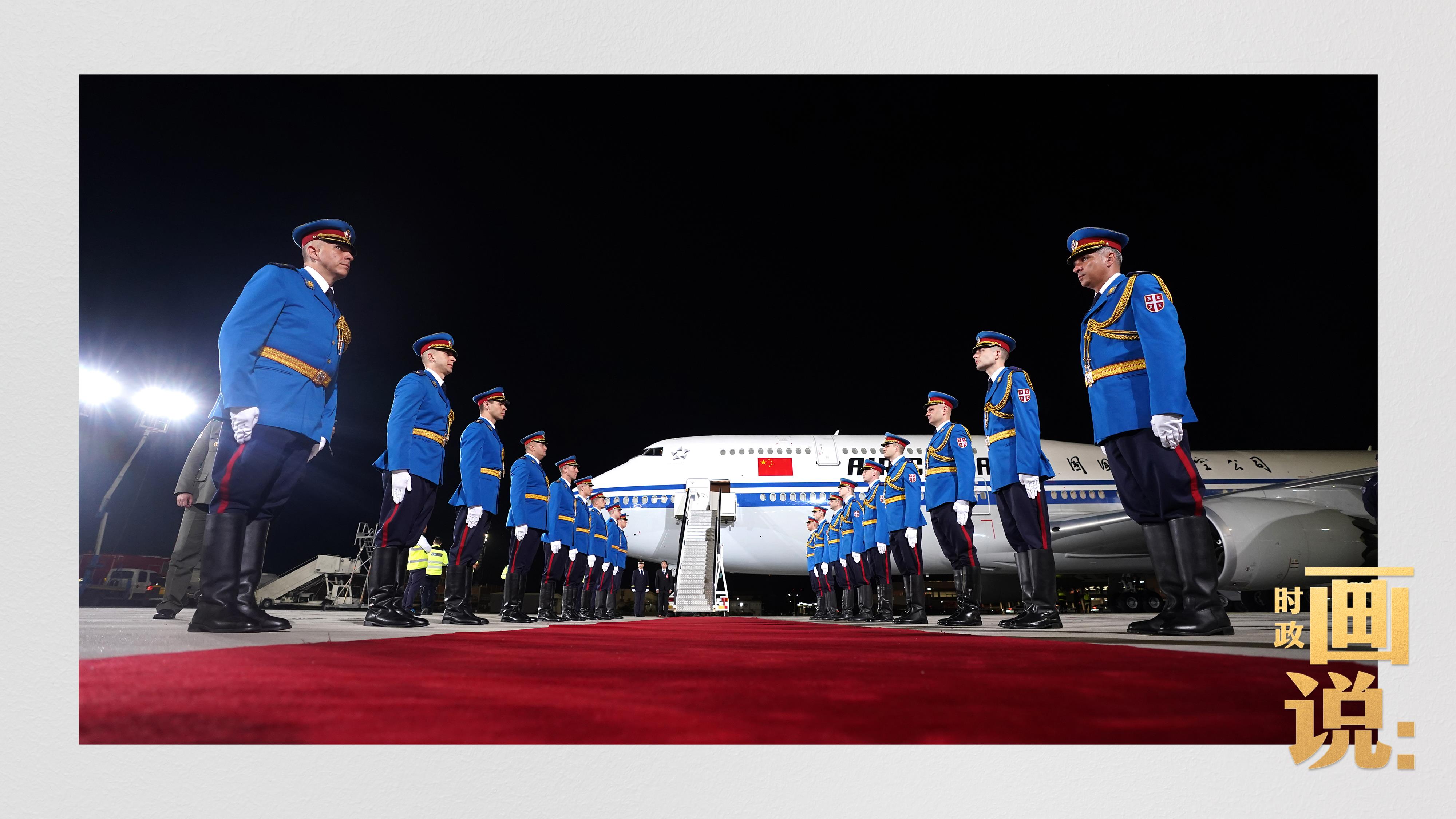 當?shù)貢r間5月7日晚,國家主席習(xí)近平乘專機抵達貝爾格萊德,應(yīng)邀對塞爾維亞進行國事訪問。升空護航的戰(zhàn)機、到機場迎候的武契奇總統(tǒng)夫婦等塞爾維亞國家政要,獨具特色的機場迎賓儀式,鮮花、笑臉與少年,載歌載舞的盛裝民眾……