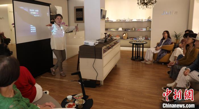 5月10日,臺(tái)灣知名藝術(shù)史學(xué)者朱惠良在臺(tái)北一個(gè)文化沙龍講述昆曲藝術(shù)。圖為朱惠良現(xiàn)場(chǎng)清唱《牡丹亭》名段。中新社記者 劉舒凌 攝