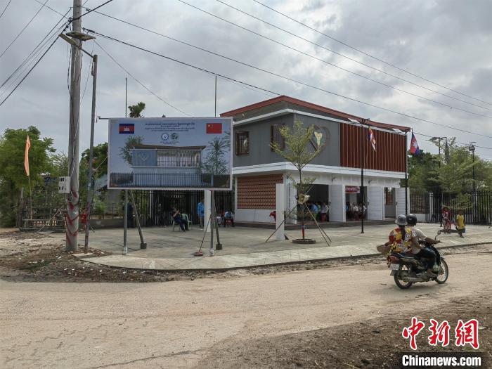 當(dāng)?shù)貢r間5月12日,新落成的中柬友好扶貧示范村村民中心。中新社記者 楊強 攝