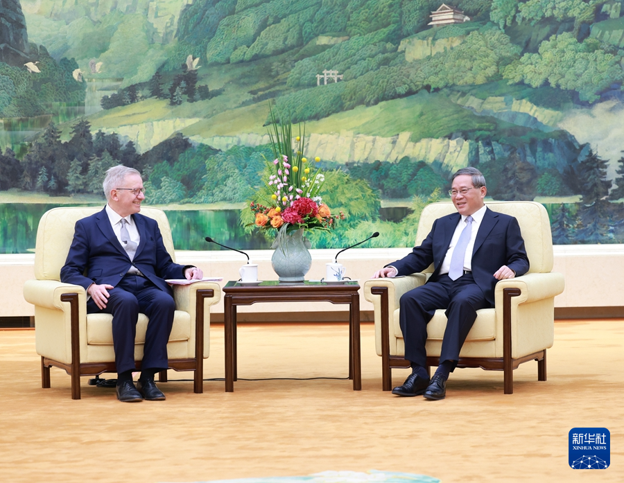 5月15日上午,國(guó)務(wù)院總理李強(qiáng)在北京人民大會(huì)堂會(huì)見(jiàn)英中貿(mào)易協(xié)會(huì)主席古沛勤率領(lǐng)的英中貿(mào)協(xié)訪(fǎng)華團(tuán)。新華社記者 王曄 攝