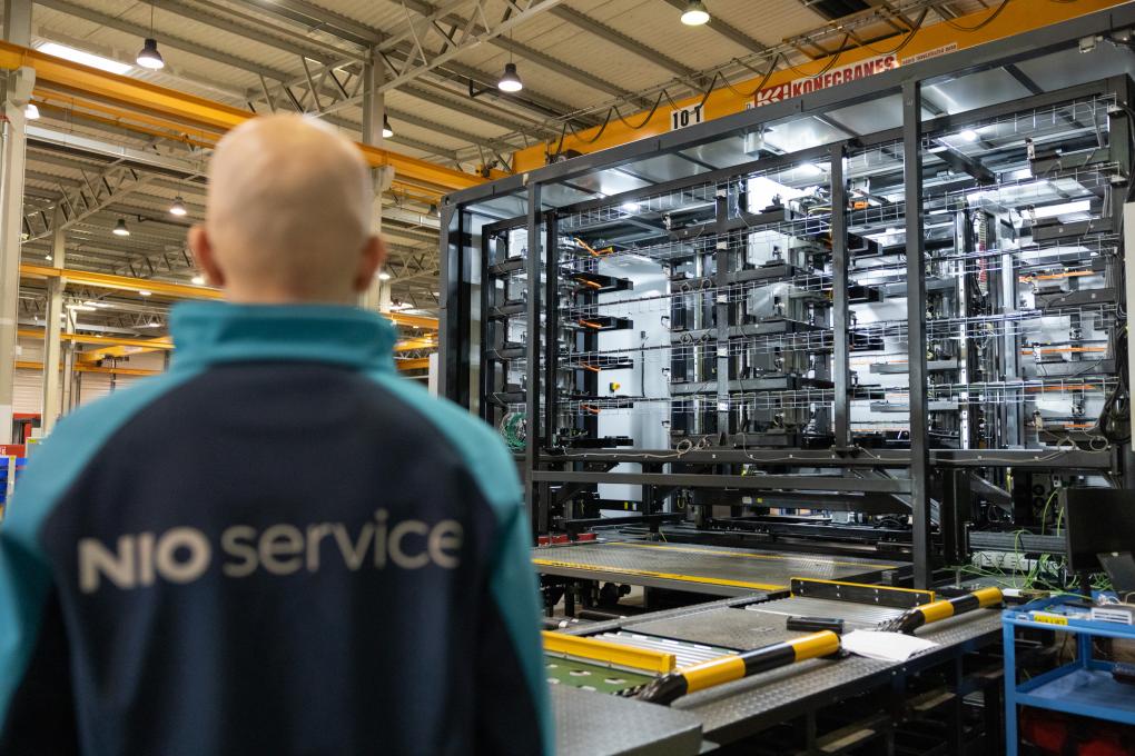 1月26日,在匈牙利比奧托爾巴吉,一名工人在蔚來能源歐洲工廠工作。新華社發(fā)(弗爾季·奧蒂洛攝)