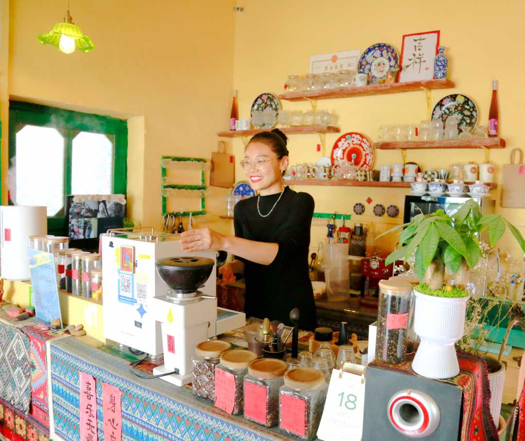 “這里的生活氣息深深打動(dòng)了我?!币淮螏燔嚶眯?,讓張媛媛下決心留下來創(chuàng)業(yè)。她在熱斯坦歷史文化街區(qū)開了一家咖啡館,色彩鮮明的裝修、時(shí)尚氣息的裝飾,使小店很快成為當(dāng)?shù)芈糜蔚男×咙c(diǎn)。