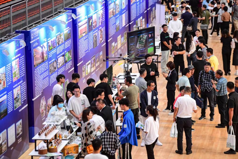 在沈陽市沈陽農(nóng)業(yè)大學禾豐體育館舉辦的遼寧省高??萍汲晒D(zhuǎn)化對接大會現(xiàn)場(2023年9月攝)。新華社發(fā)