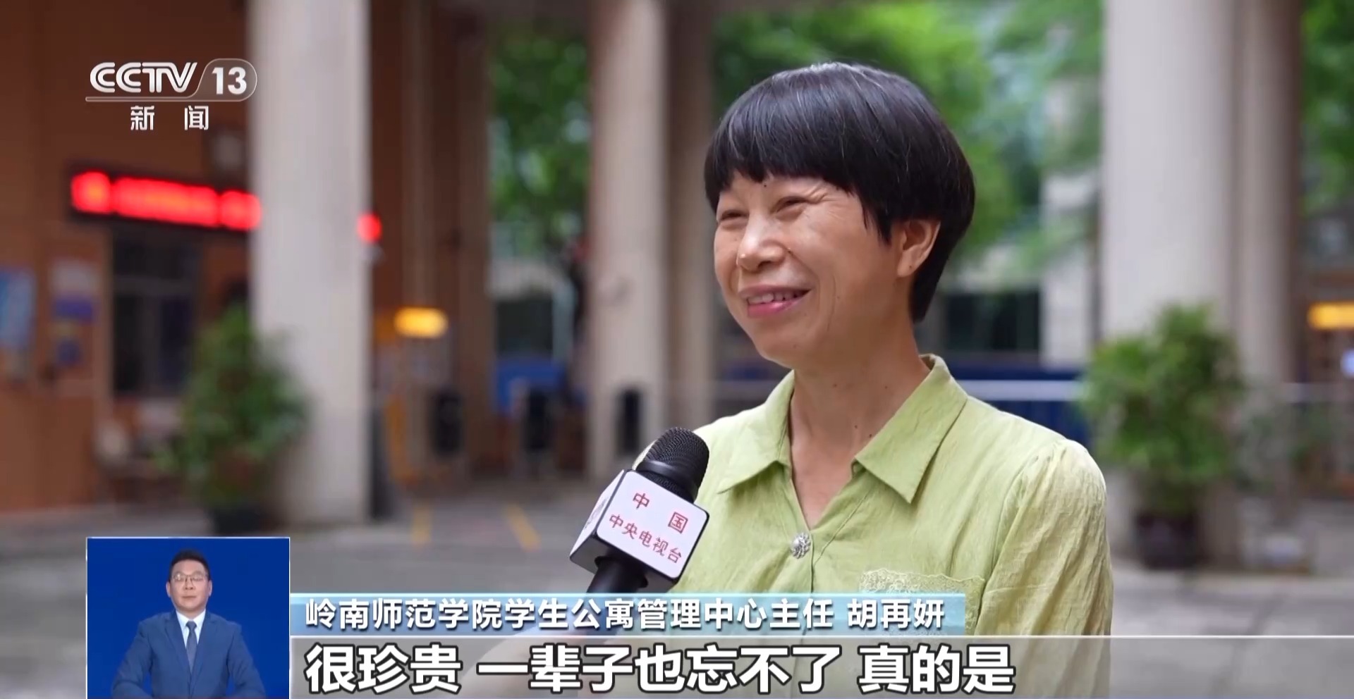 嶺南師范學(xué)院學(xué)生處思教科老師 林一帆:形象照是很有儀式感的,一方面我們學(xué)生會(huì)覺得,我們?cè)诨仞佀薰馨⒁蹋ê褪迨澹?,他們平時(shí)對(duì)我們非常好;另一方面,宿管阿姨她會(huì)覺得我這個(gè)職位是很有價(jià)值感的,是很有成就感的。