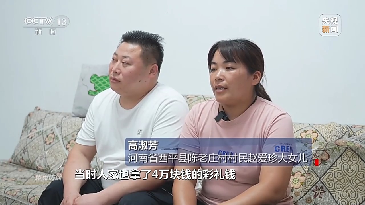 河南省西平縣陳老莊村村民趙愛珍大女兒 高淑芳:當(dāng)時(shí),人家也拿了4萬塊錢的彩禮,但是我們沒有要,我感覺“零彩禮”給我們家?guī)砹诵腋?。后來我們村成立了“紅娘協(xié)會(huì)”,我就積極加入了“紅娘協(xié)會(huì)”,去各個(gè)農(nóng)戶家宣傳低價(jià)彩禮的理念,讓更多的人受益。
